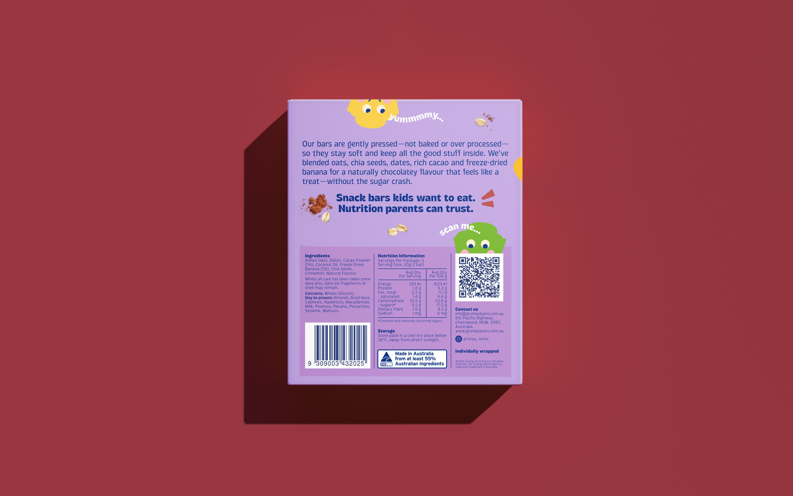 Grumpy Bums Cacao Banana Pressed Oat Bars (5 pack)