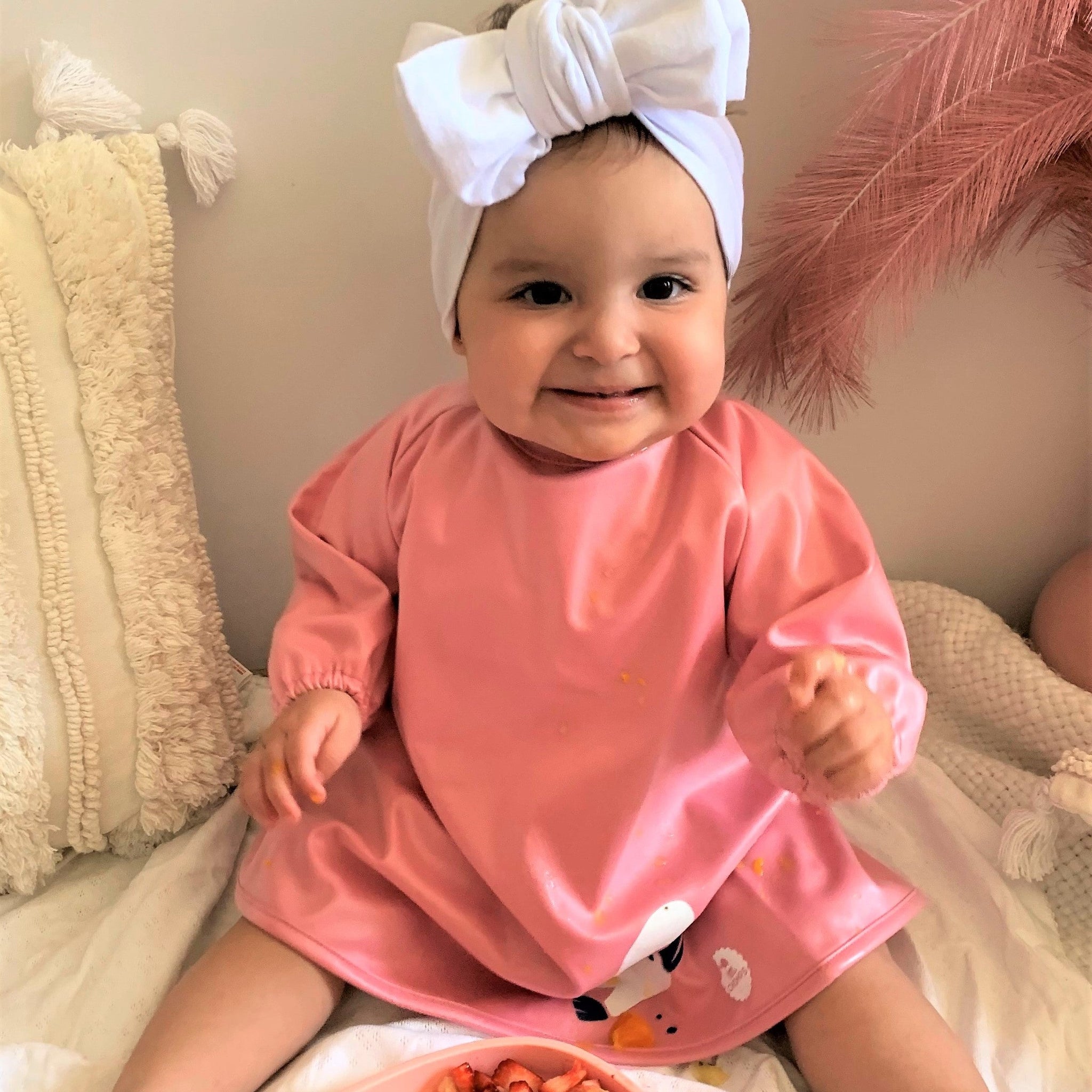 The Messy Mealtime Smock is perfect for baby-led weaning and self-feeding!