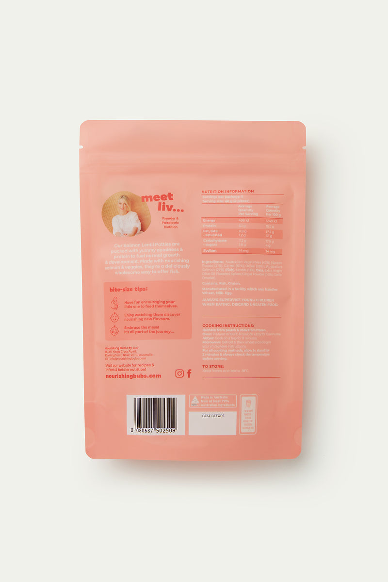 Our Salmon Lentil Patties are Paediatric Dietitian created, loved by parents and have locally sourced clean ingredients.